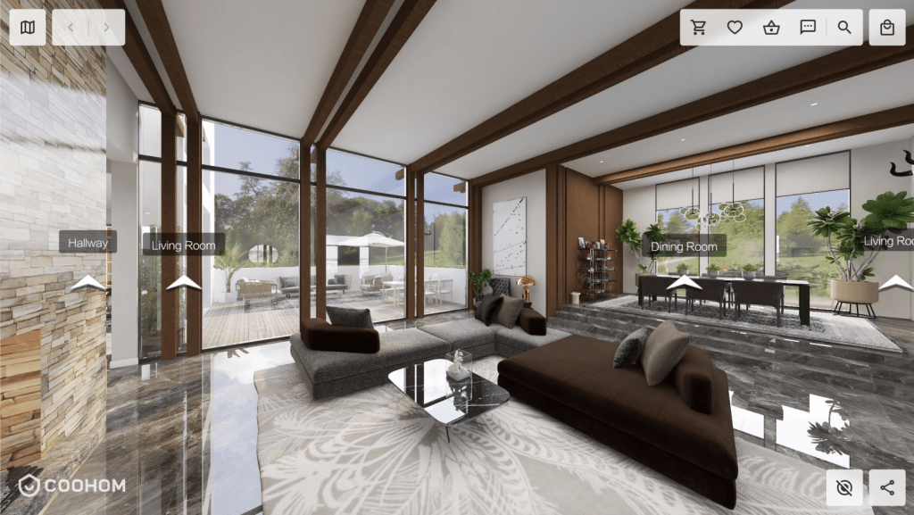 • Immersive VR and AR: Take your presentations to the next level with Coohom’s virtual and augmented reality capabilities. Allow your clients to virtually walk through their future space, providing an unparalleled sense of realism and scale.
